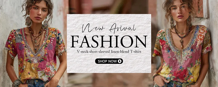 Vintage Purple Rose Embroidery Linen V-neck Short Sleeve T-shirt
