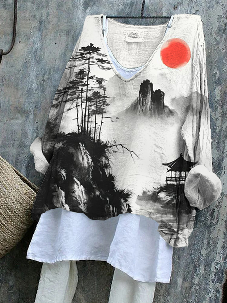 Asian Art Pattern Cozy Flowy Tunic