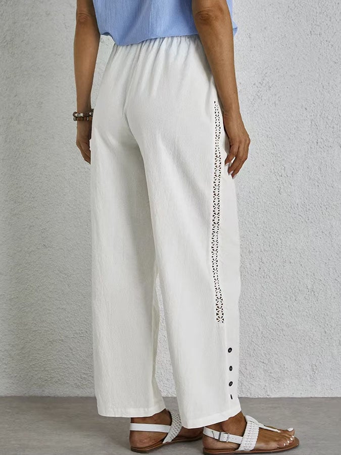 Casual Elegant Lace-Up With Pockets Buttons Lace Side Cotton Linen Trousers