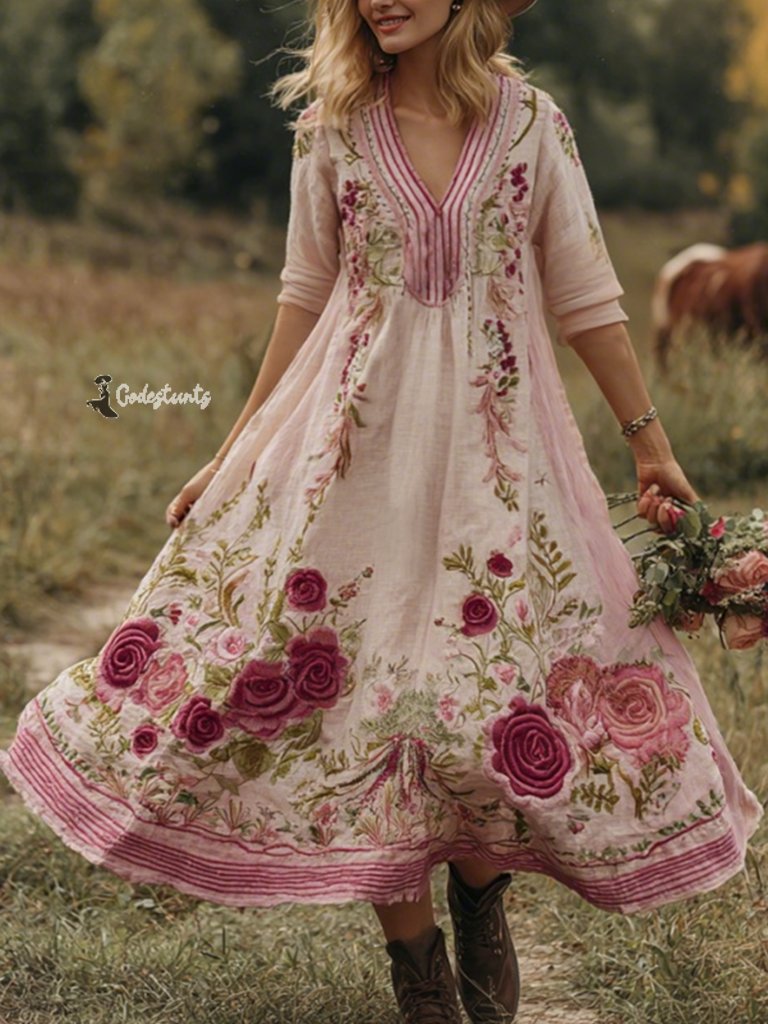 Pattern: Pink Roses And Striped Embroidered
