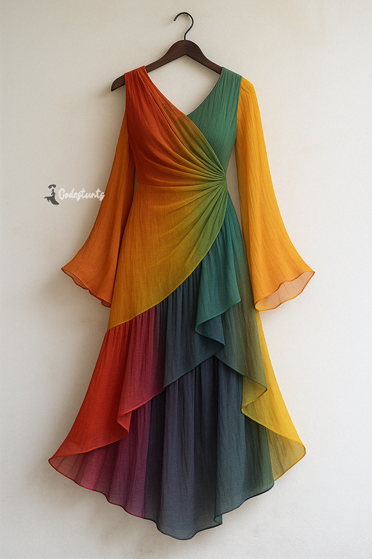 Contrast Rainbow Ruffle Chiffon Dress cd49