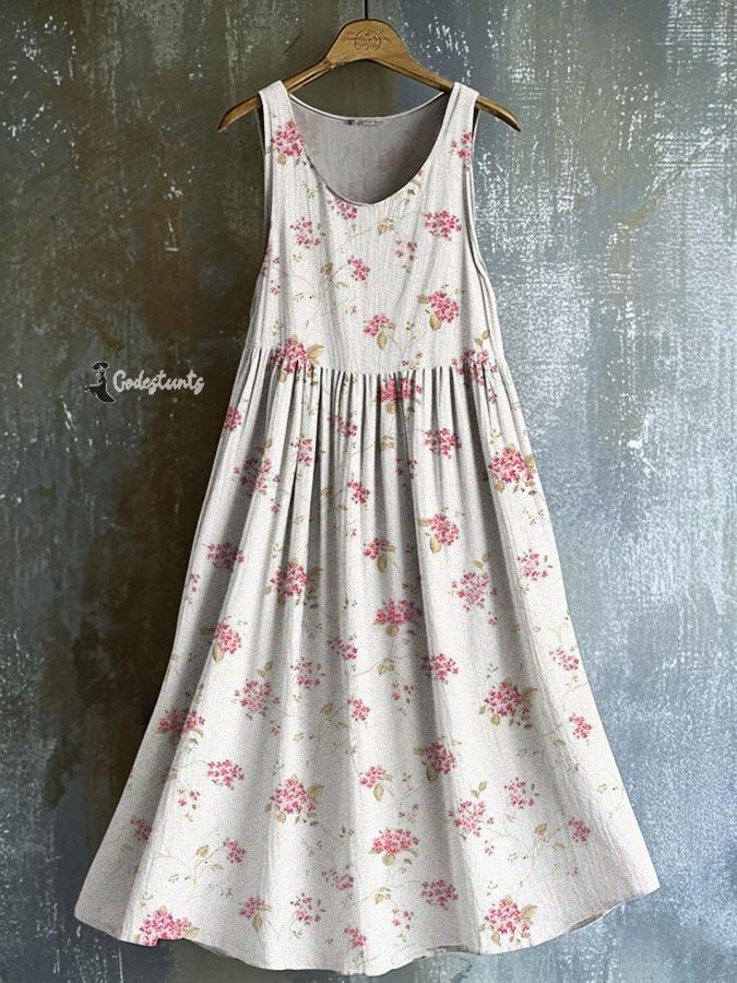 Cotton and linen woven retro pastoral style literary small floral suspender dress