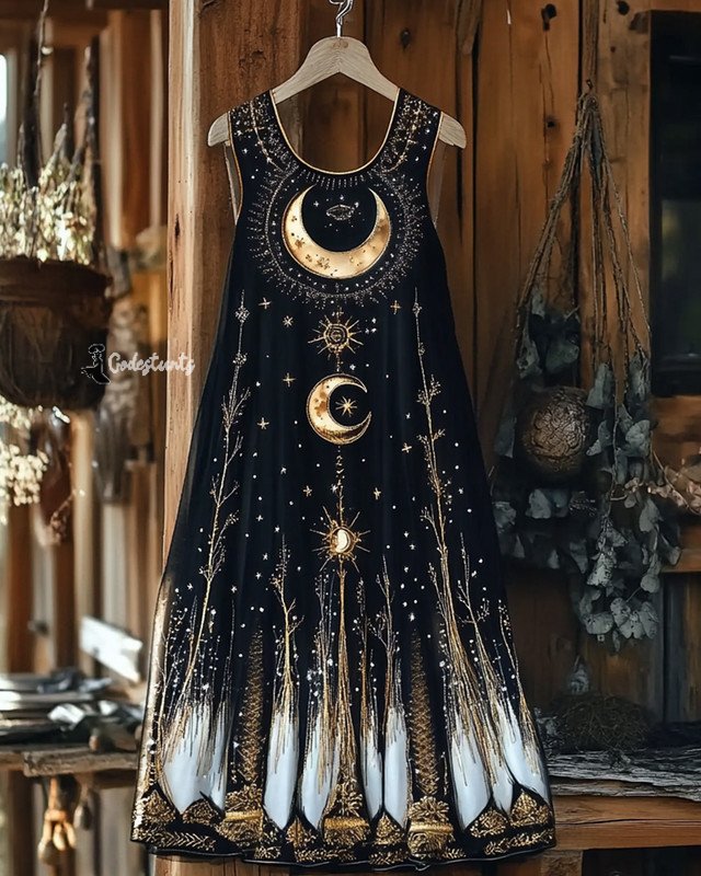 Ethnic handmade star and moon embroidery irregular dress 5b84