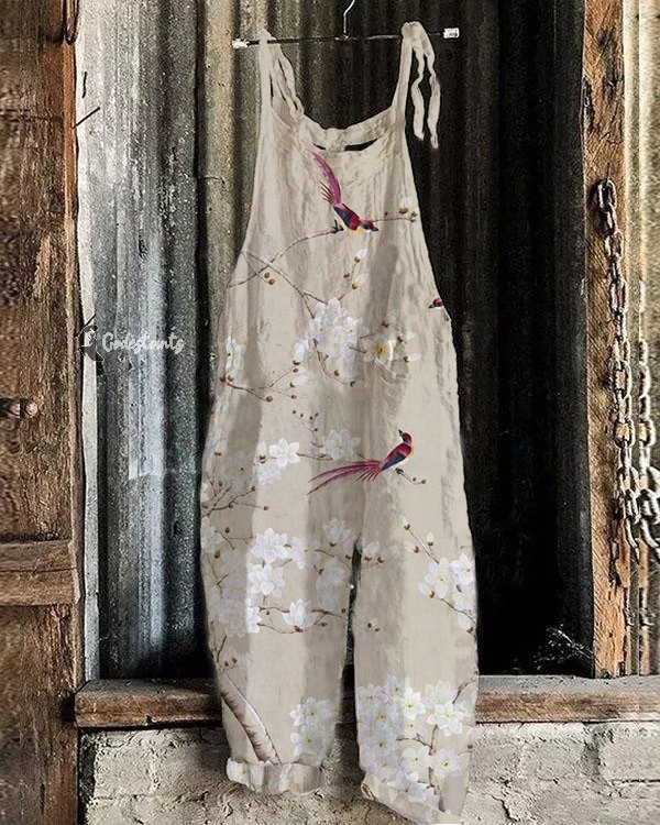 Flower Birds Landscape Art Retro Jumpsuit