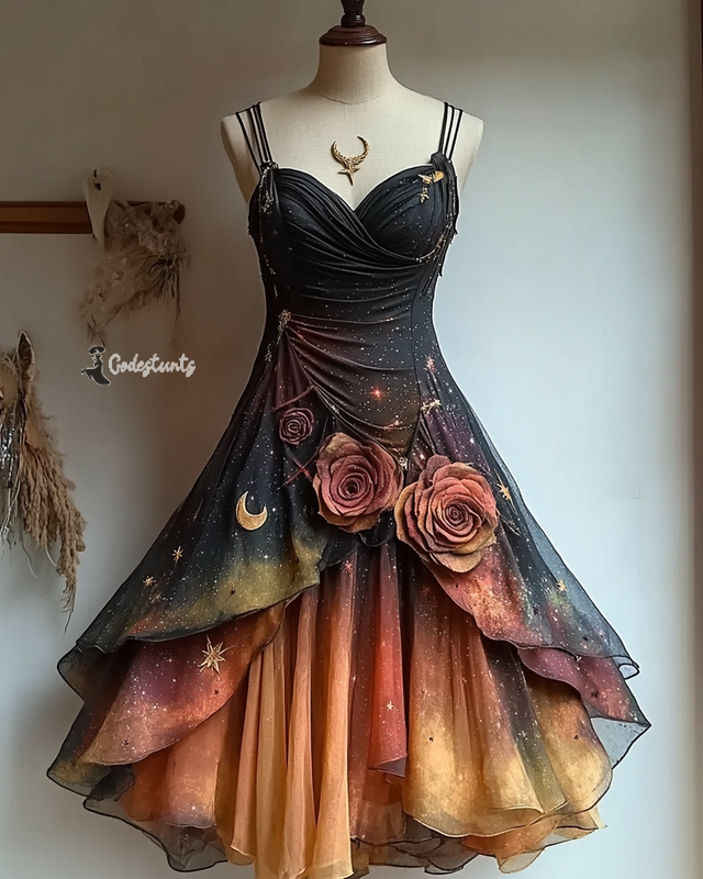 Gothic style star and moon embroidered suspender dress bd53