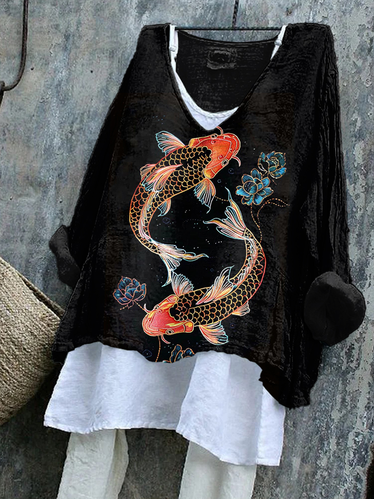 Japanese Art Koi Fish Print Cozy Flowy Tunic