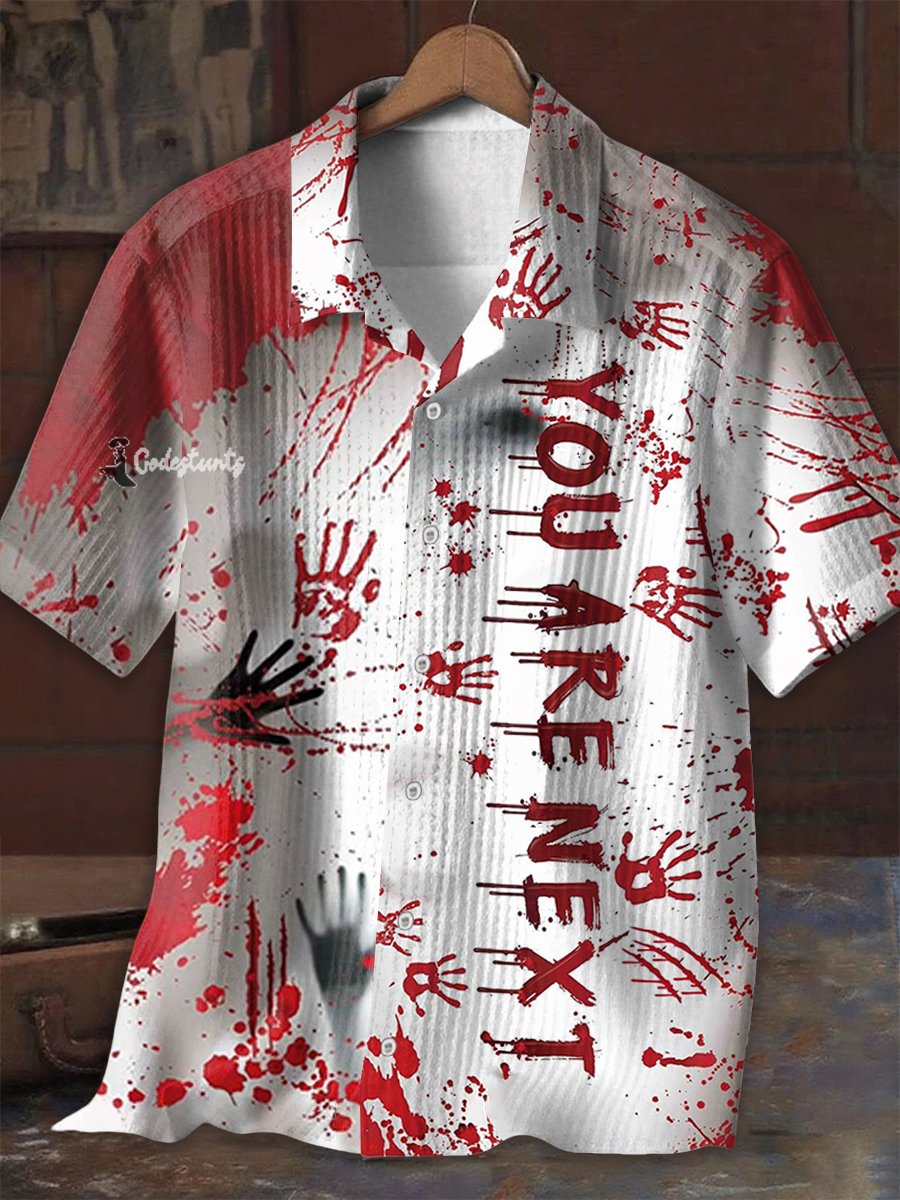 Men's Bloody Halloween Print Short Sleeve Shirt