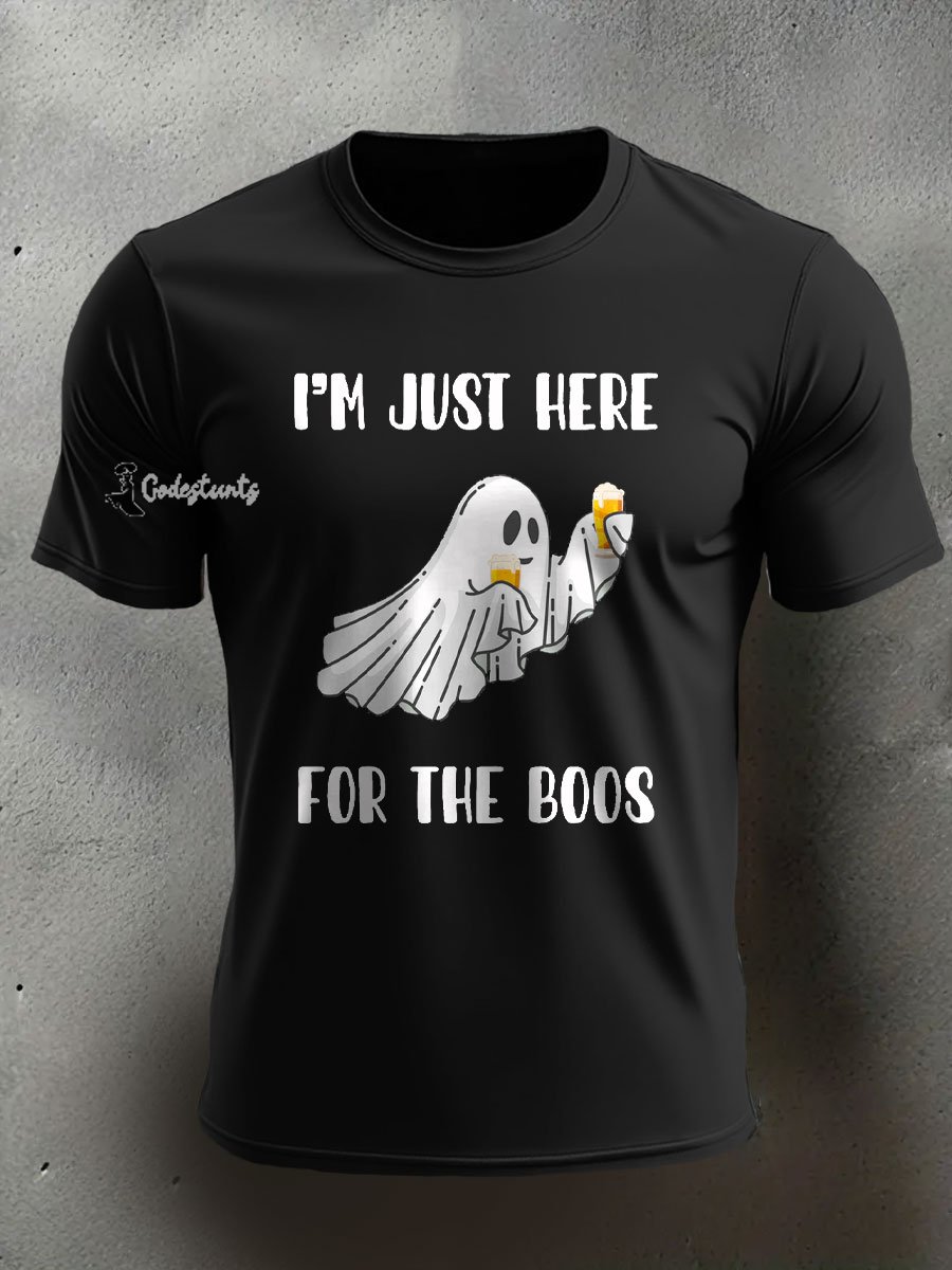 Men's Funny Halloween Horror Just Here For The Boos Printed T-shirt