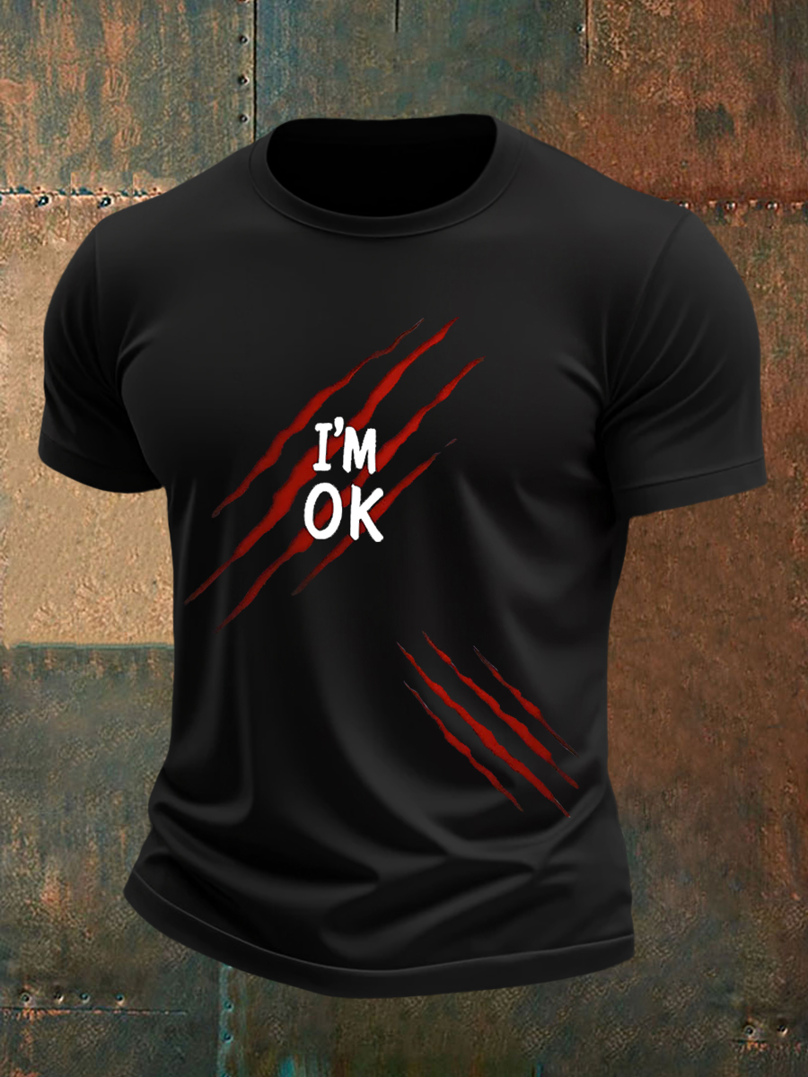 Men's Funny Halloween I'm OK Scratch Print Casual Tee