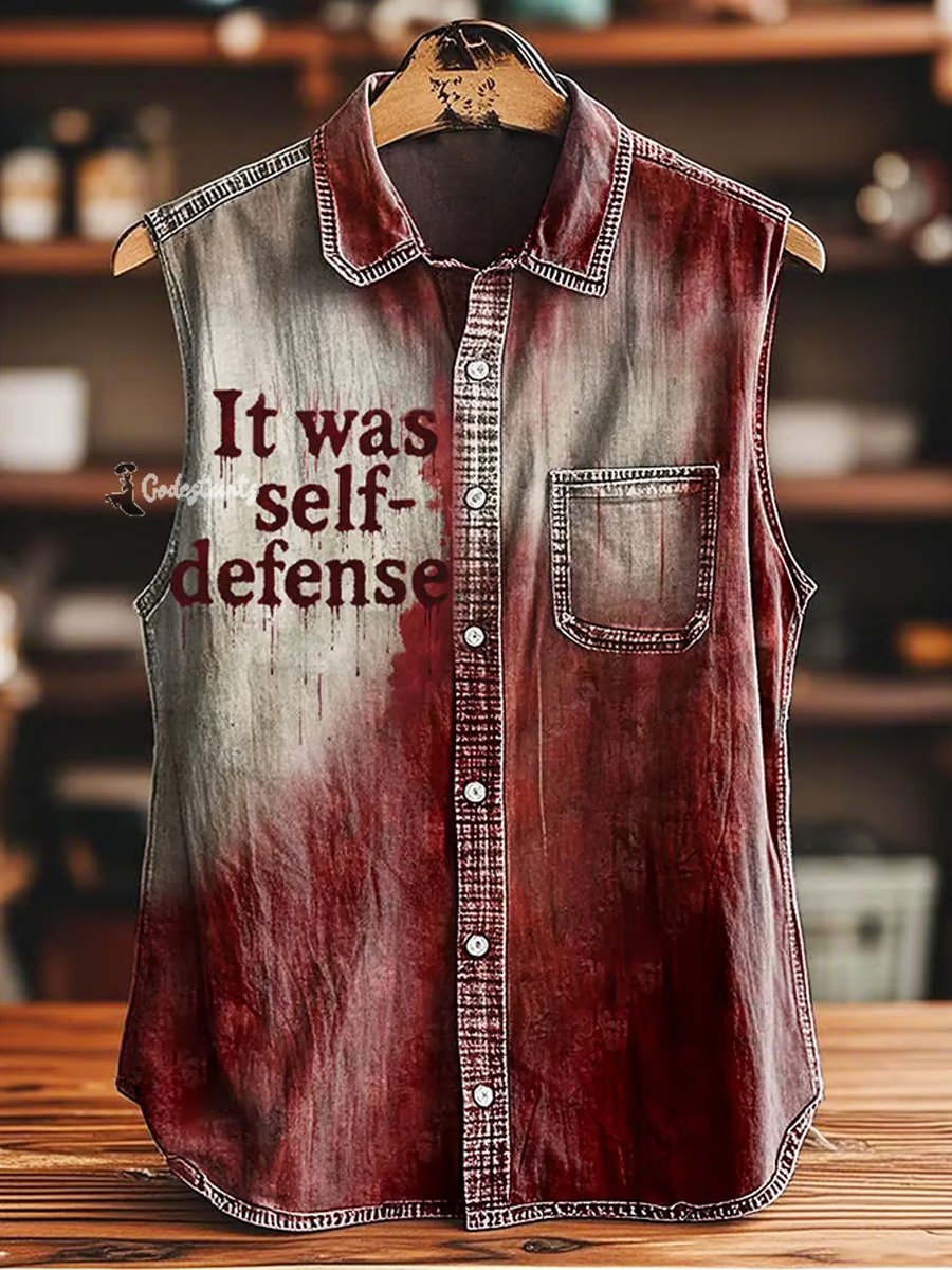 Men's Halloween It Was Self-Defense Bloodstained Print Vintage Casual Sleeveless Shirt