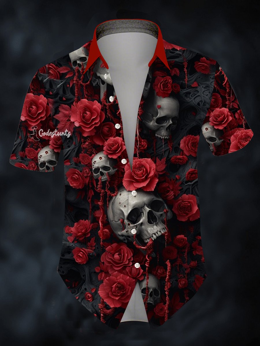 Men's Halloween Rose Skull Short Sleeve Shirt