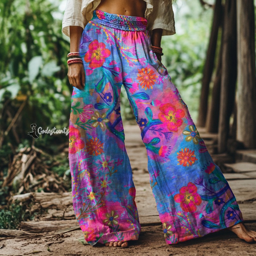 Vintage Bohemian Floral Print Loose Wide-leg Pants