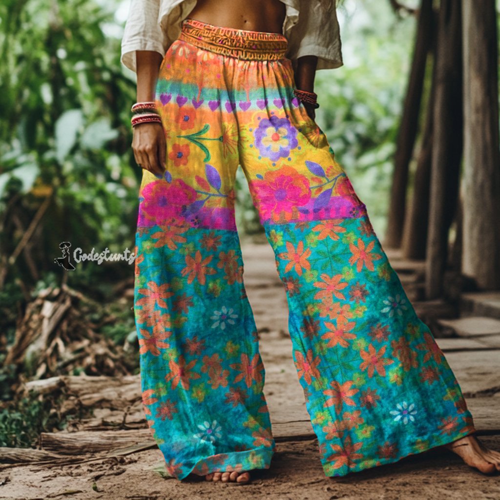 Vintage Bohemian Floral Print Loose Wide-leg Pants