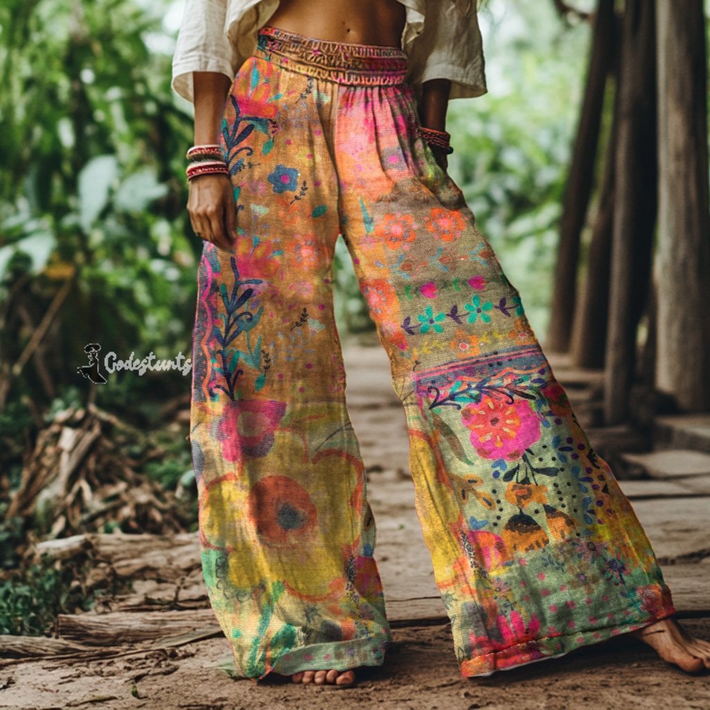Vintage Bohemian Floral Print Loose Wide-leg Pants