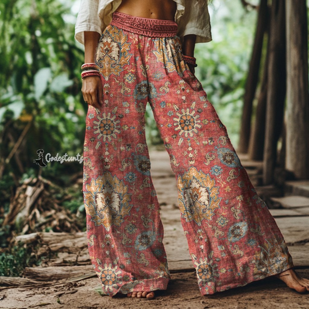 Vintage Bohemian Floral Print Loose Wide-leg Pants