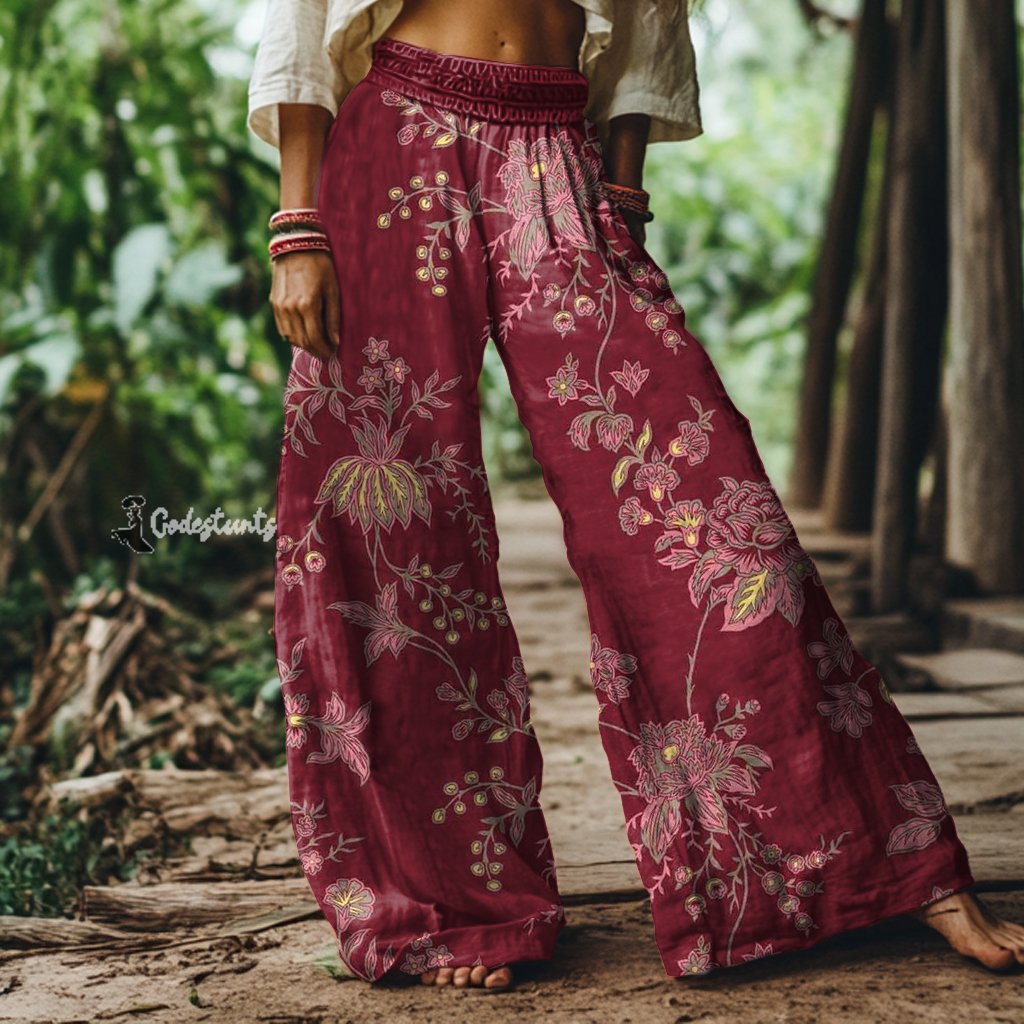 Vintage Bohemian Floral Print Loose Wide-leg Pants