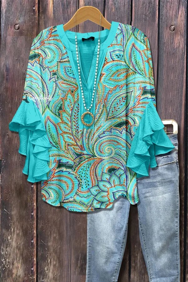 Retro Paisley Print V-Neck Top
