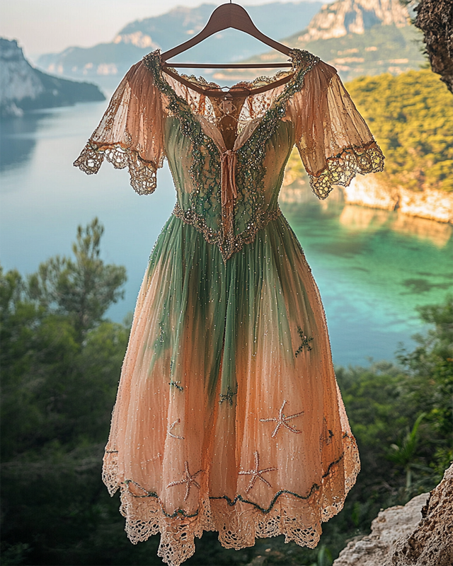 Summer Vacation Starfish Gradient Beaded Chiffon Dress 119f