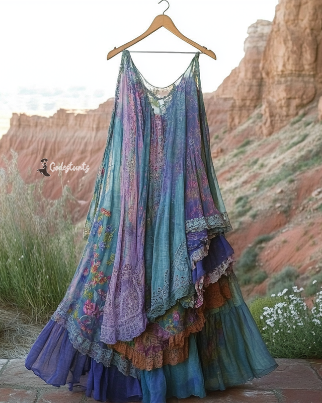 Summer Vintage Floral Lace Patchwork Dress 8b23