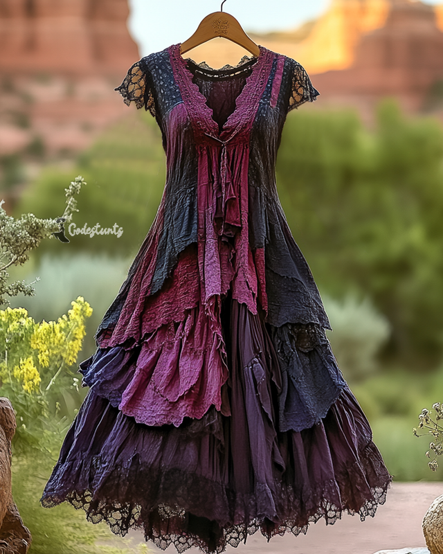 Summer Vintage Irregular Lace Patchwork Dress f4f2