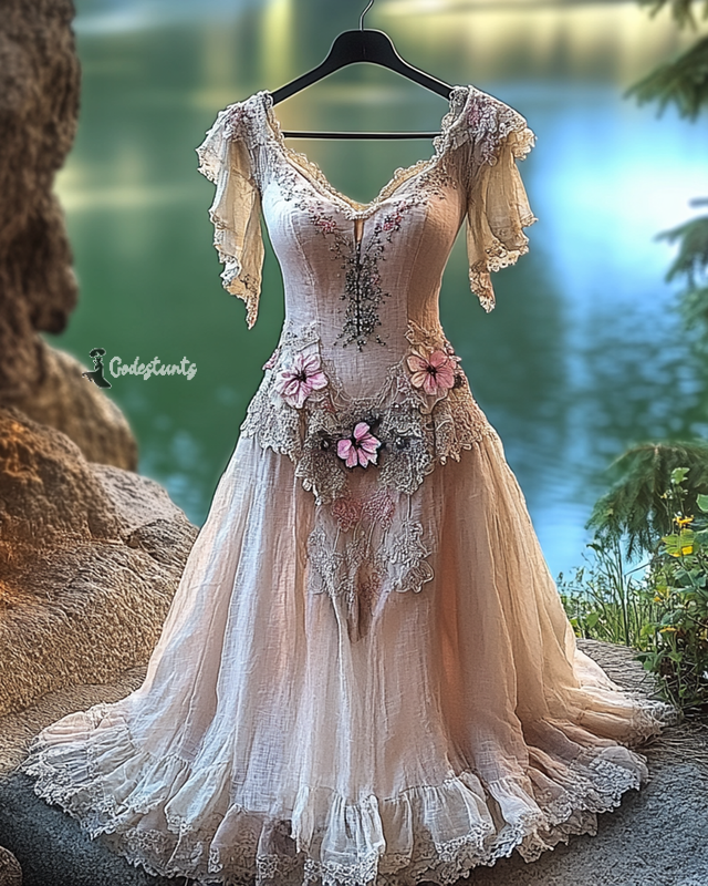 Summer Irregular Lace Patchwork BeadedRuffle Dress 349e