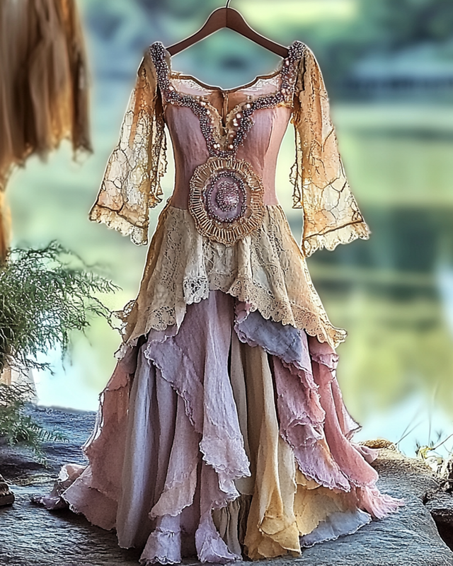 Summer Irregular Lace Patchwork BeadedRuffle Dress 3f33