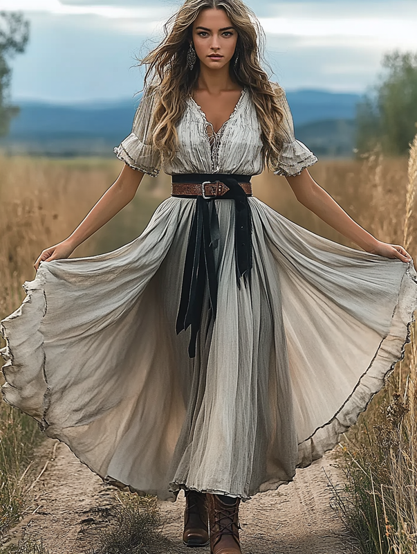 Summer western style contrast dress a381