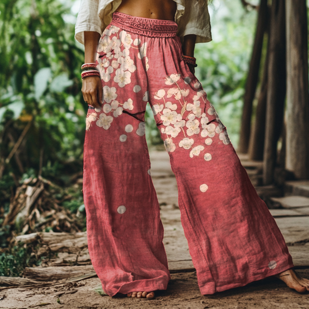 Vintage Floral Art Print Loose Pants