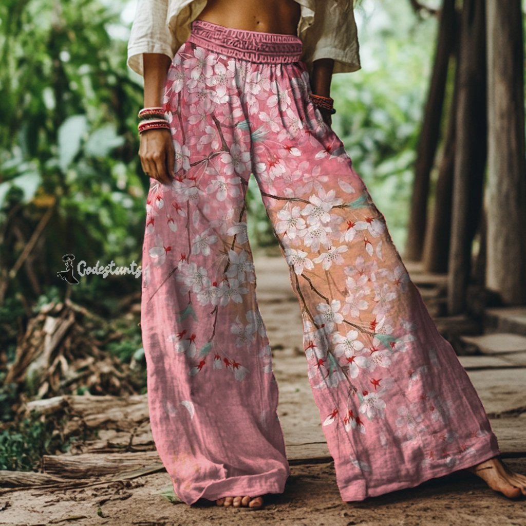 Vintage Floral Art Print Loose Pants