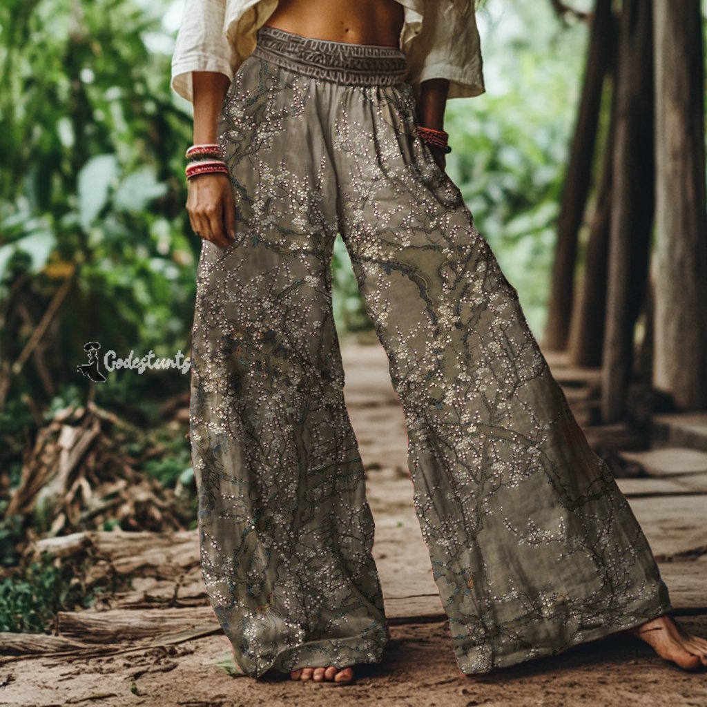 Vintage Floral Art Print Loose Pants