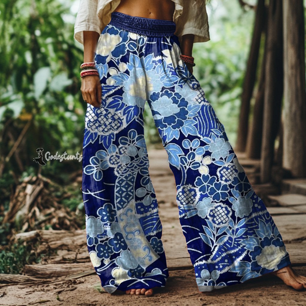 Vintage Japanese Art Print Loose Wide-leg Pants