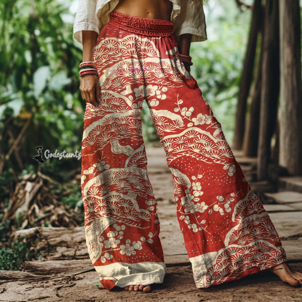Vintage Bohemian Floral Print Loose Wide-leg Pants