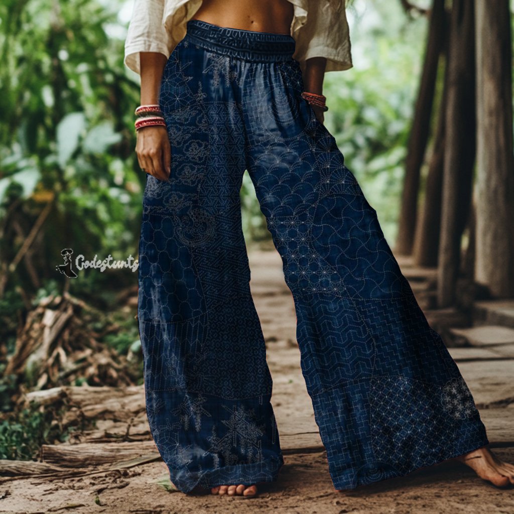 Vintage Bohemian Floral Print Loose Wide-leg Pants