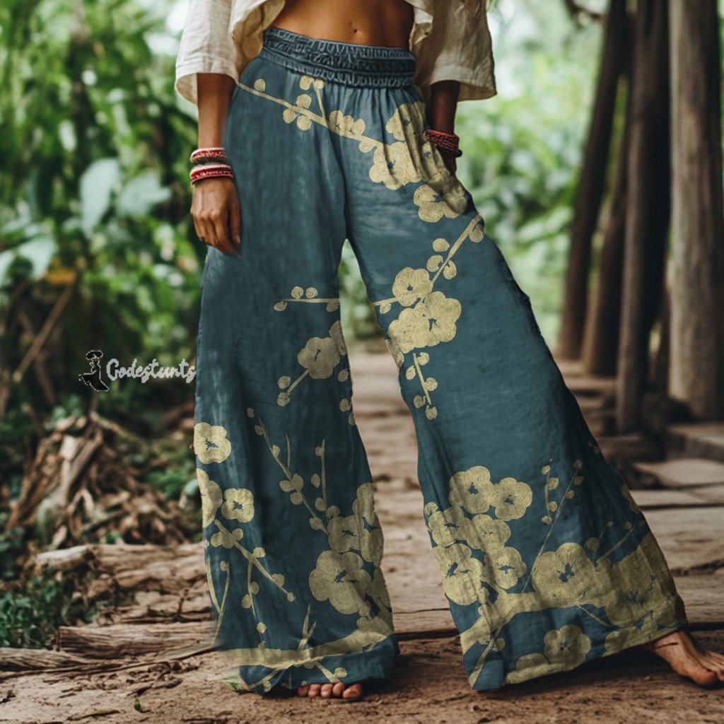 Vintage Plum Art Print Loose Pants