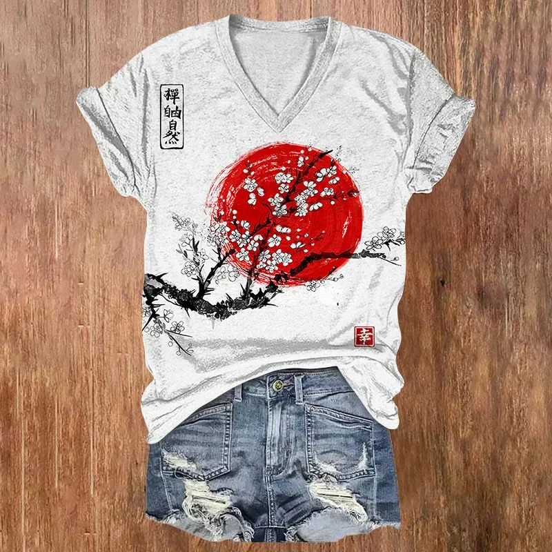 Vintage Sunrise Japanese Art Print V-Neck T-Shirt