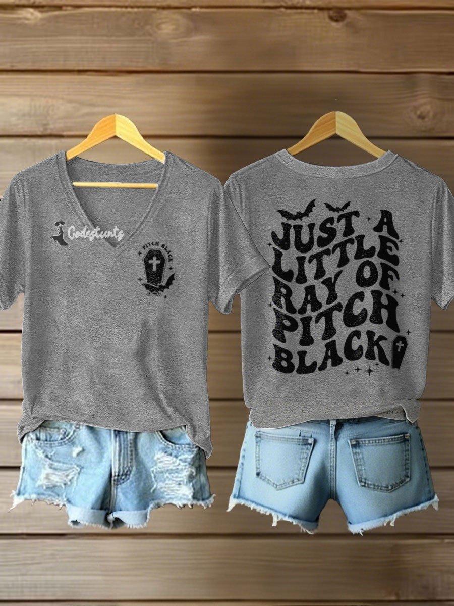 Women's A Little Ray of Pitch Black Print Short Sleeve T-Shirt