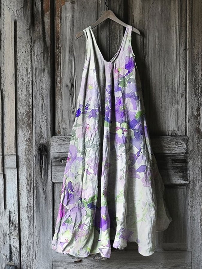 Women's Alzheimer's Purple Floral Linen Blend Tank Dress