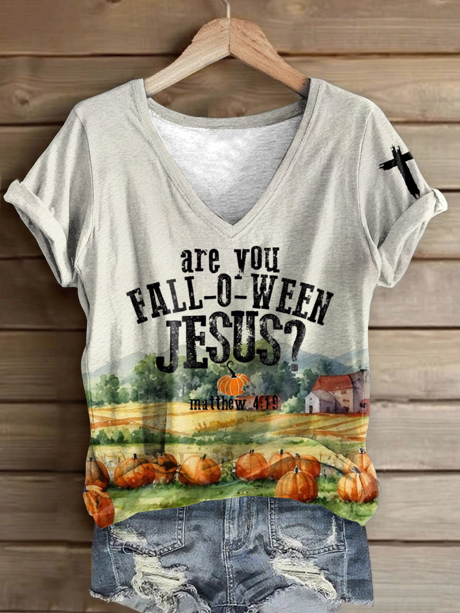 Women's Are You Fall-O-Ween Jesus Halloween Print T-shirt