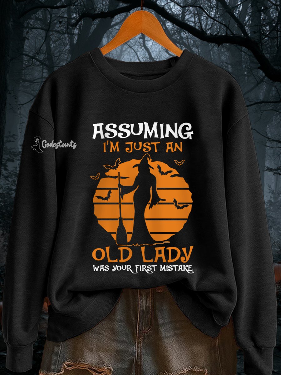 Women's Assuming I'm Just An Old Lady Was Your First Mistake Funny Halloween Witch Casual Sweatshirt
