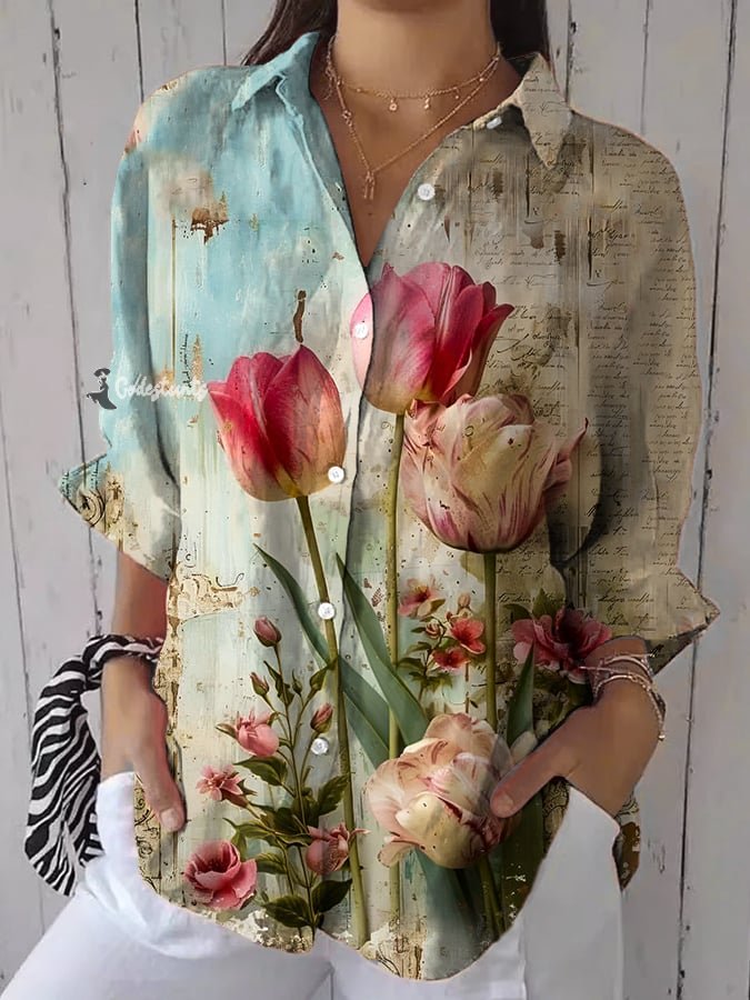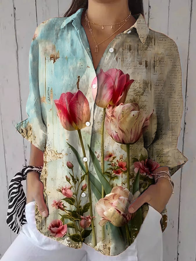 Women's casual retro floral print shirt