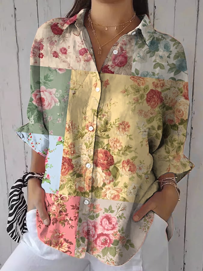 Women's casual retro floral print shirt