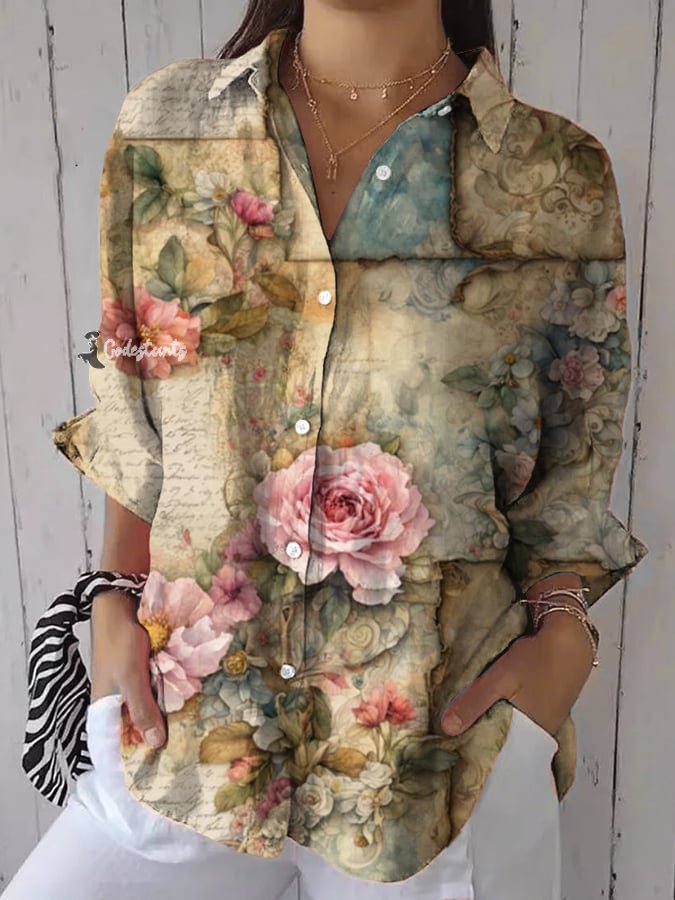 Women's casual retro floral print shirt
