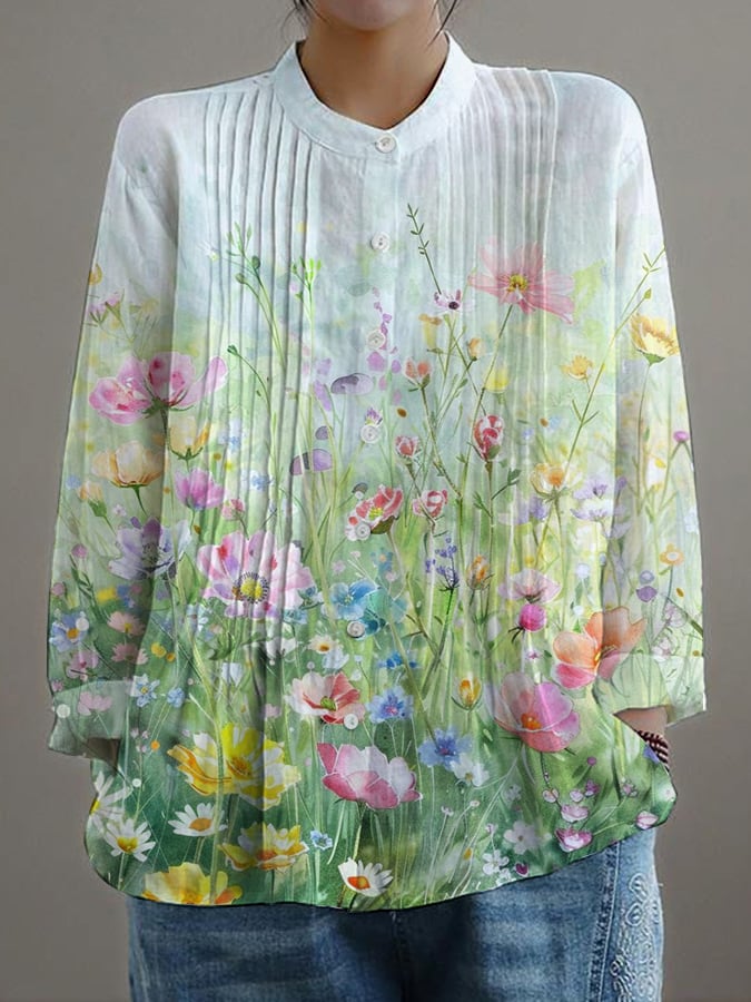 Women's Casual Loose Floral Cotton And Linen Shirt
