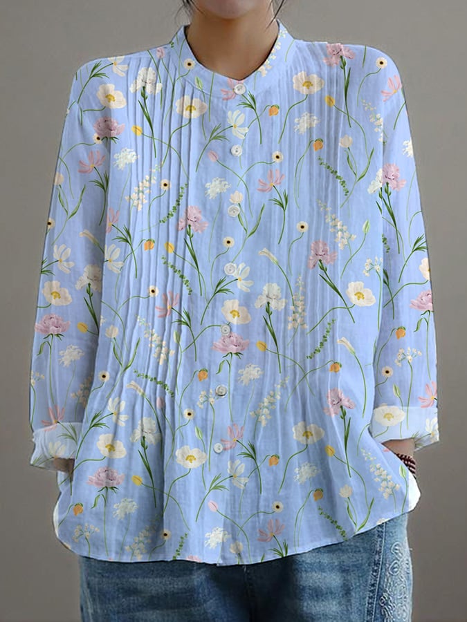 Women's Casual Loose Floral Cotton And Linen Shirt