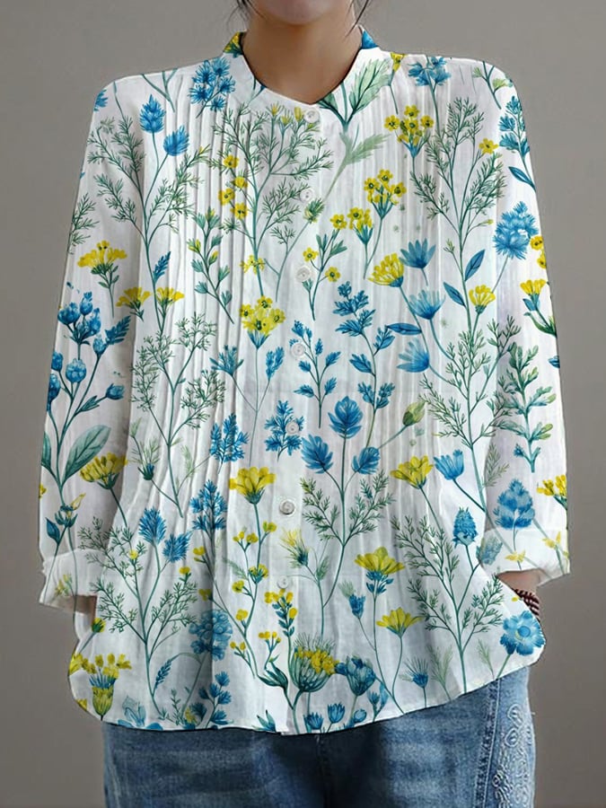 Women's Casual Loose Floral Cotton And Linen Shirt