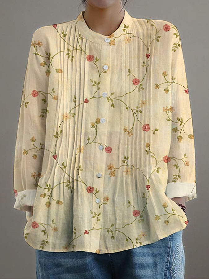 Women's Casual Loose Floral Cotton And Linen Shirt