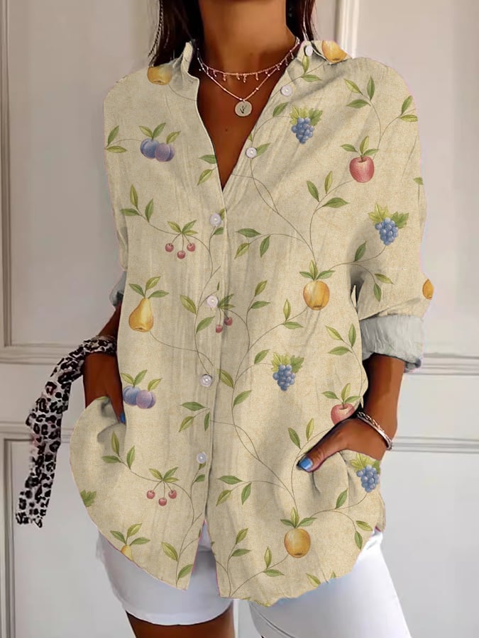 Women's Casual Retro Fruit Cotton And Linen Shirt