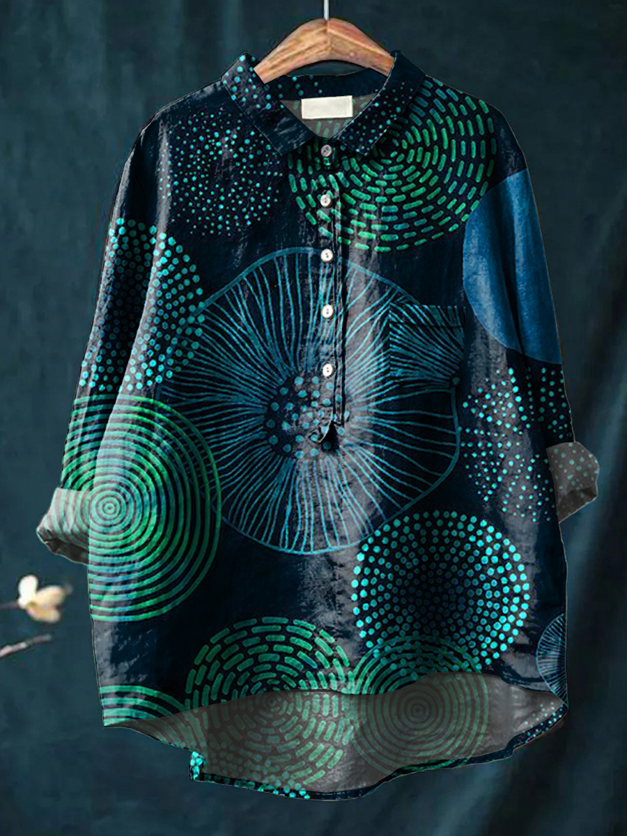 Women's Circle Abstract Art Print Casual Cotton And Linen Shirt
