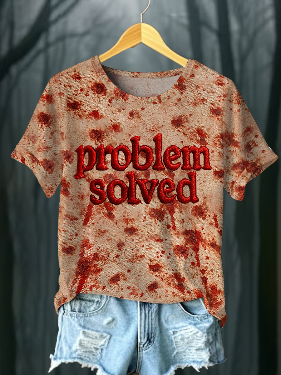 Women's Funny Halloween Problem Solved Bloodstained Print Casual Tee