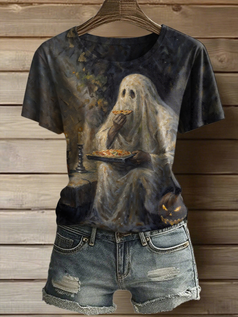 Women's Halloween BOO Pizza T-Shirt